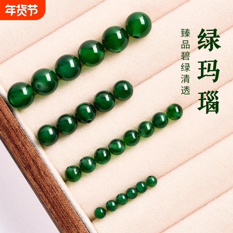 纯天然绿玛瑙珠子散珠手工diy饰品配件水晶材料手链项链单珠穿