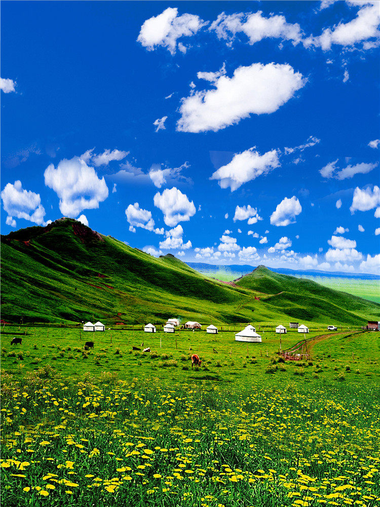 新款直播背景布立体主播墙布3D山水草原竹林室外农村风景直播幕布