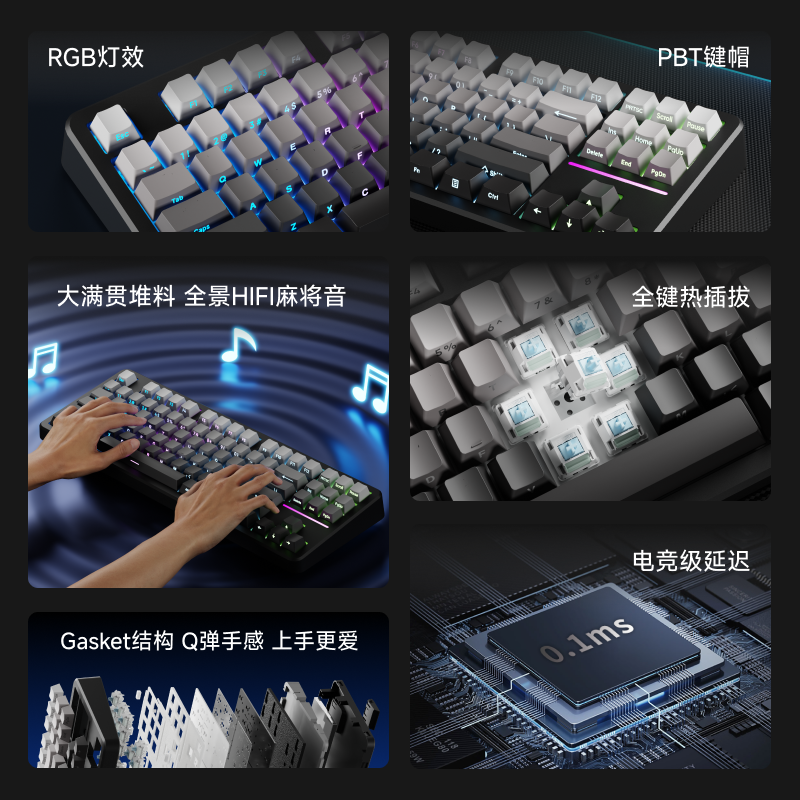 Gasket结构 全键热插拔 HIFI麻将音 RGB灯效