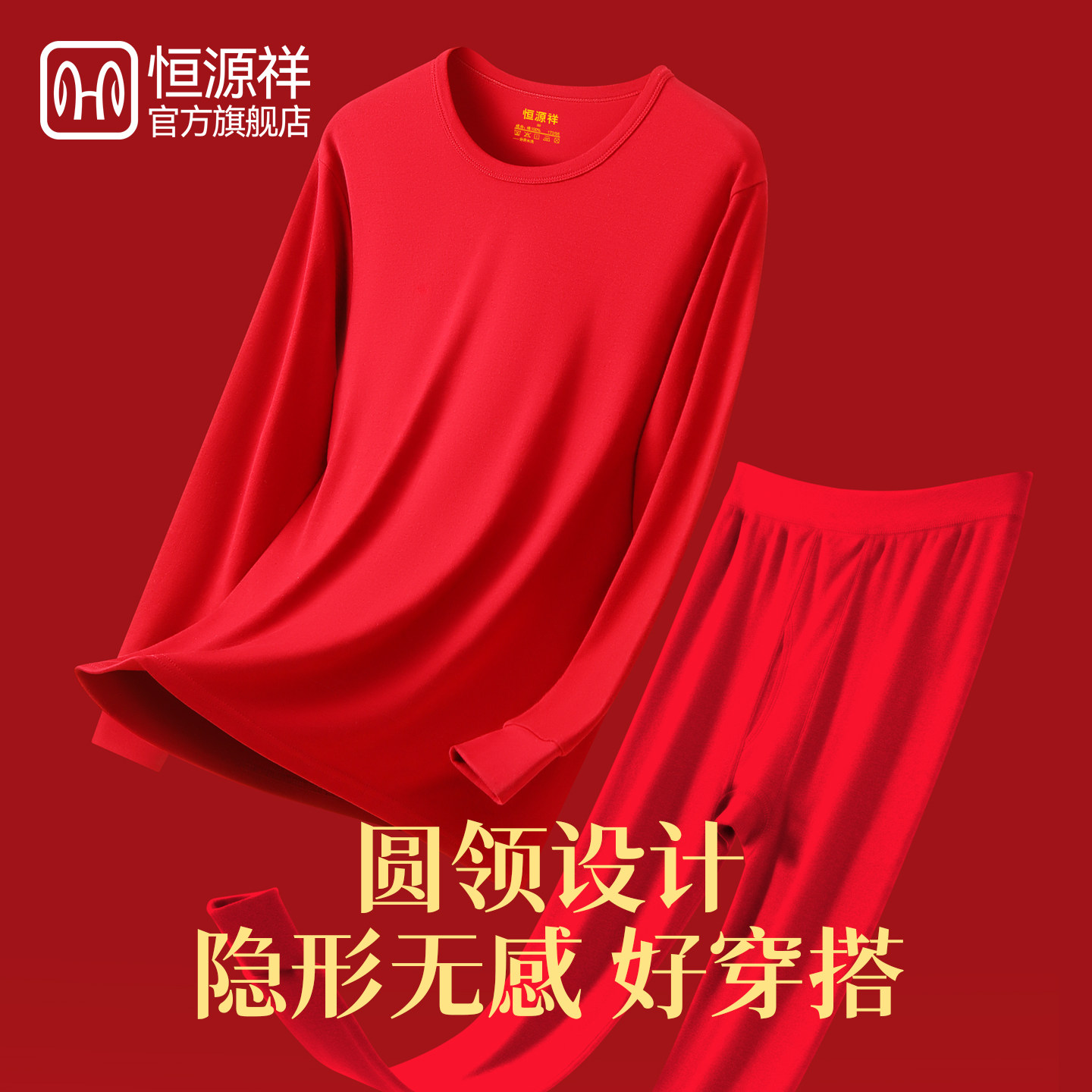 恒源祥2026本命年情侣男士女士红色保暖内衣秋衣秋裤套装马年时尚