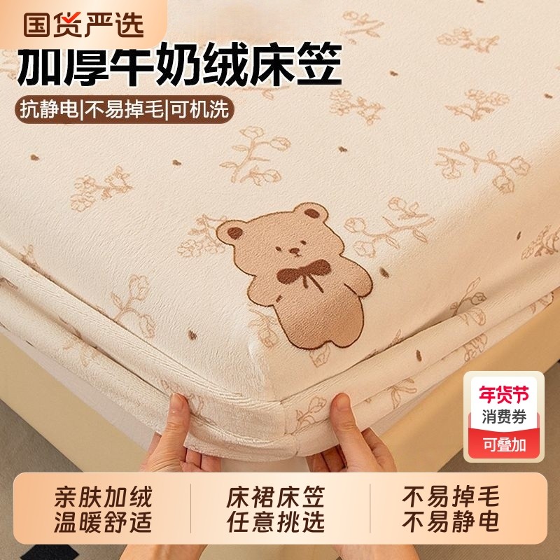 牛奶绒床裙秋冬加绒加厚2025新款单件床罩下摆床单带裙边床笠款