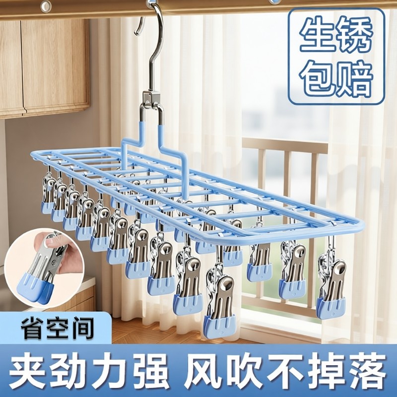 不锈钢多夹子袜子晾晒架家用阳台晾内衣内裤神器防风衣架婴儿袜夹