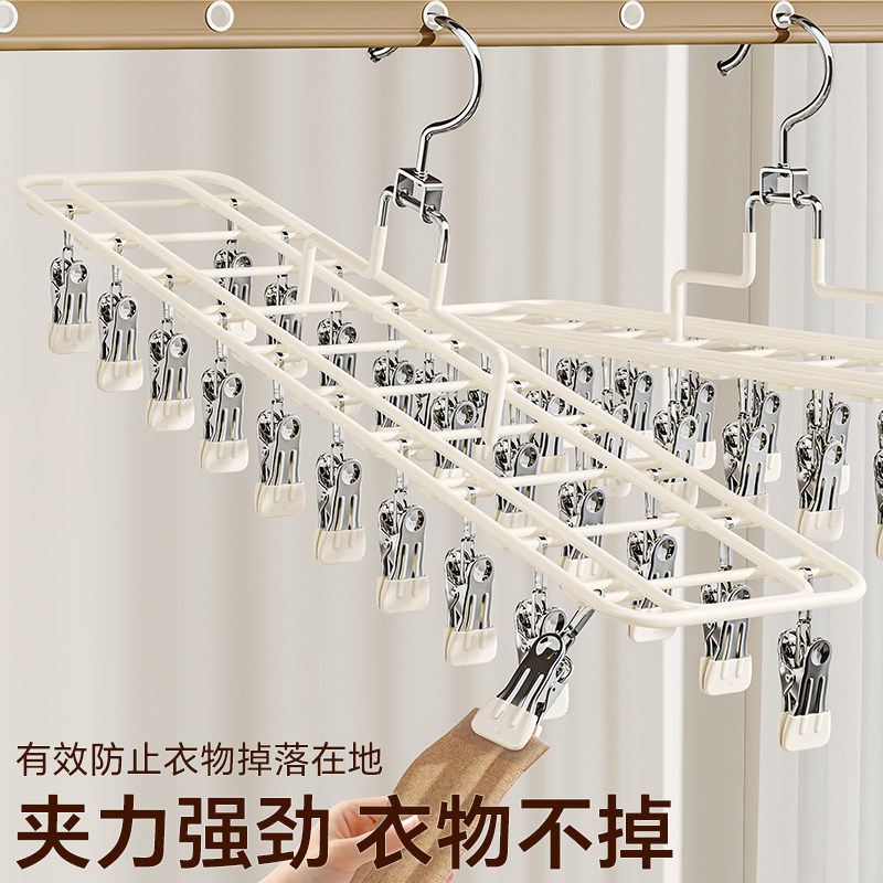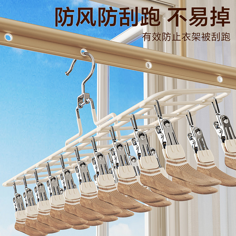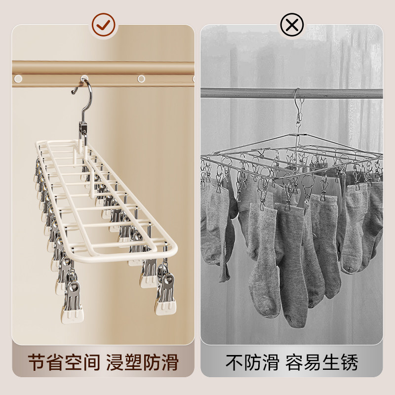 袜子晾晒架不锈钢晾衣架阳台家用带多夹子衣架多功能晒内衣夹神器