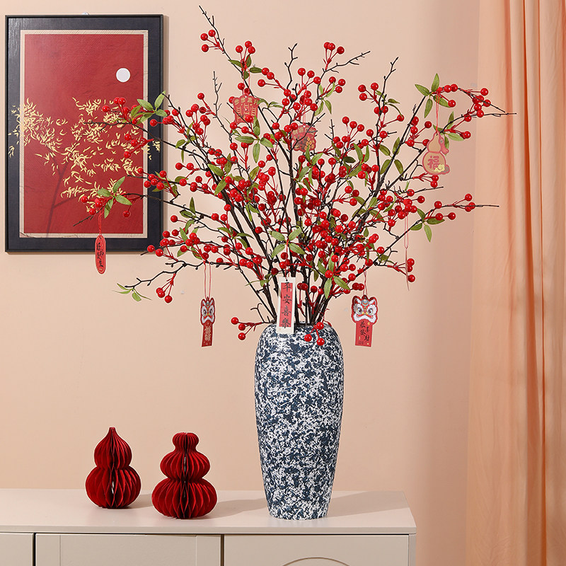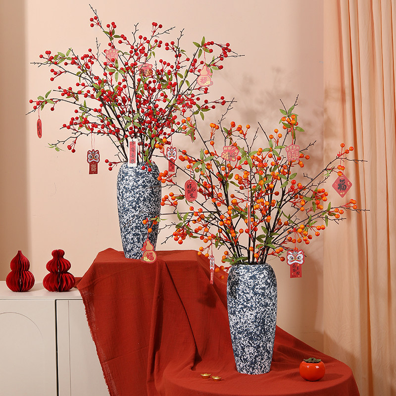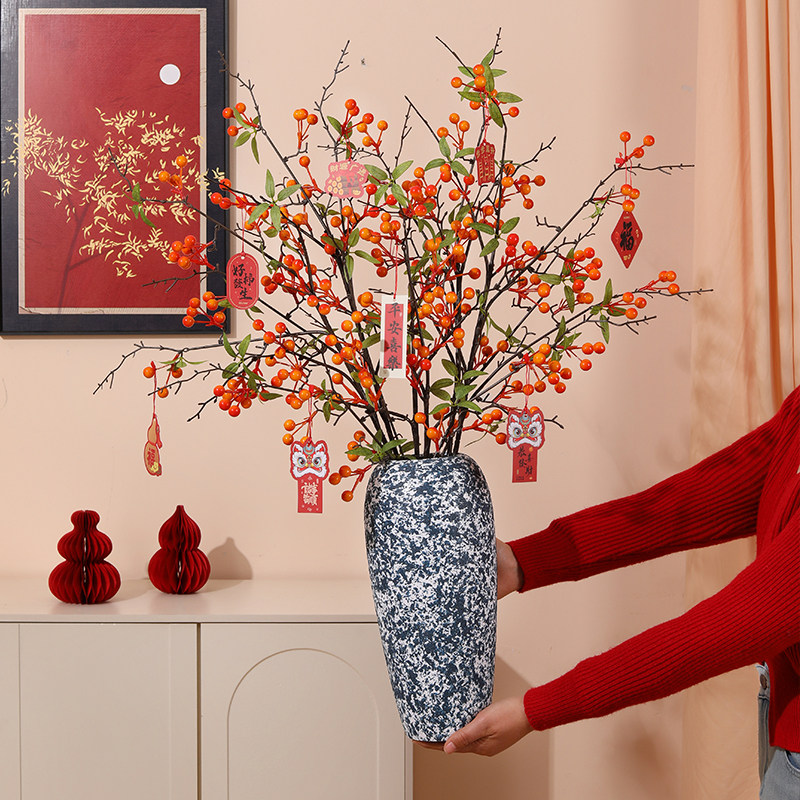 石榴花仿真花假花摆设冬青红果发财果柿子新年装饰干花束摆件客厅