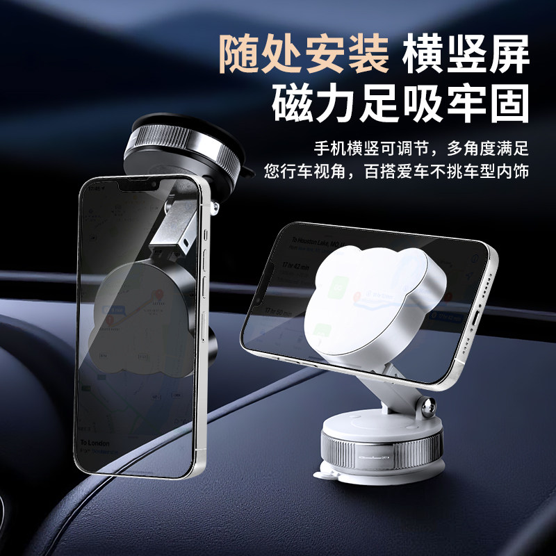 真空吸附磁吸车载手机支架2025新款吸盘车内导航手机架magsafe无线磁吸伸缩折叠便携架子墙壁通用神器