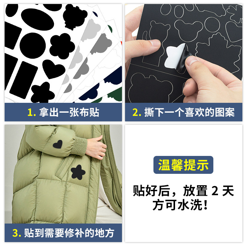 羽绒服修补无痕贴可水洗免缝黑色破洞贴章自粘皮衣专用修补布粘贴