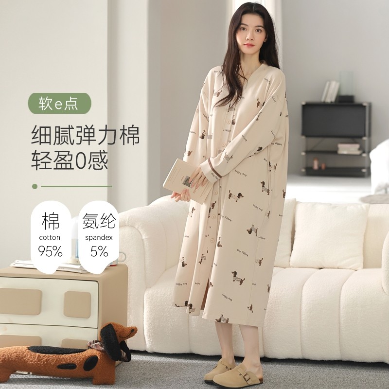 帕兰朵长款睡裙睡衣女春秋季睡袍浴袍开衫秋冬款家居服长袖纯棉