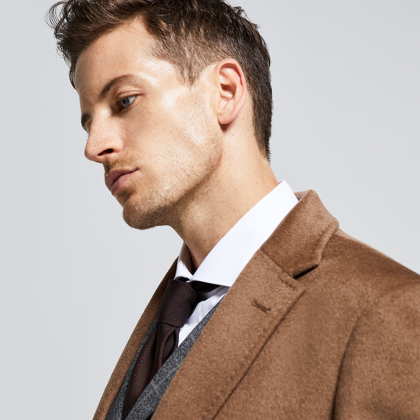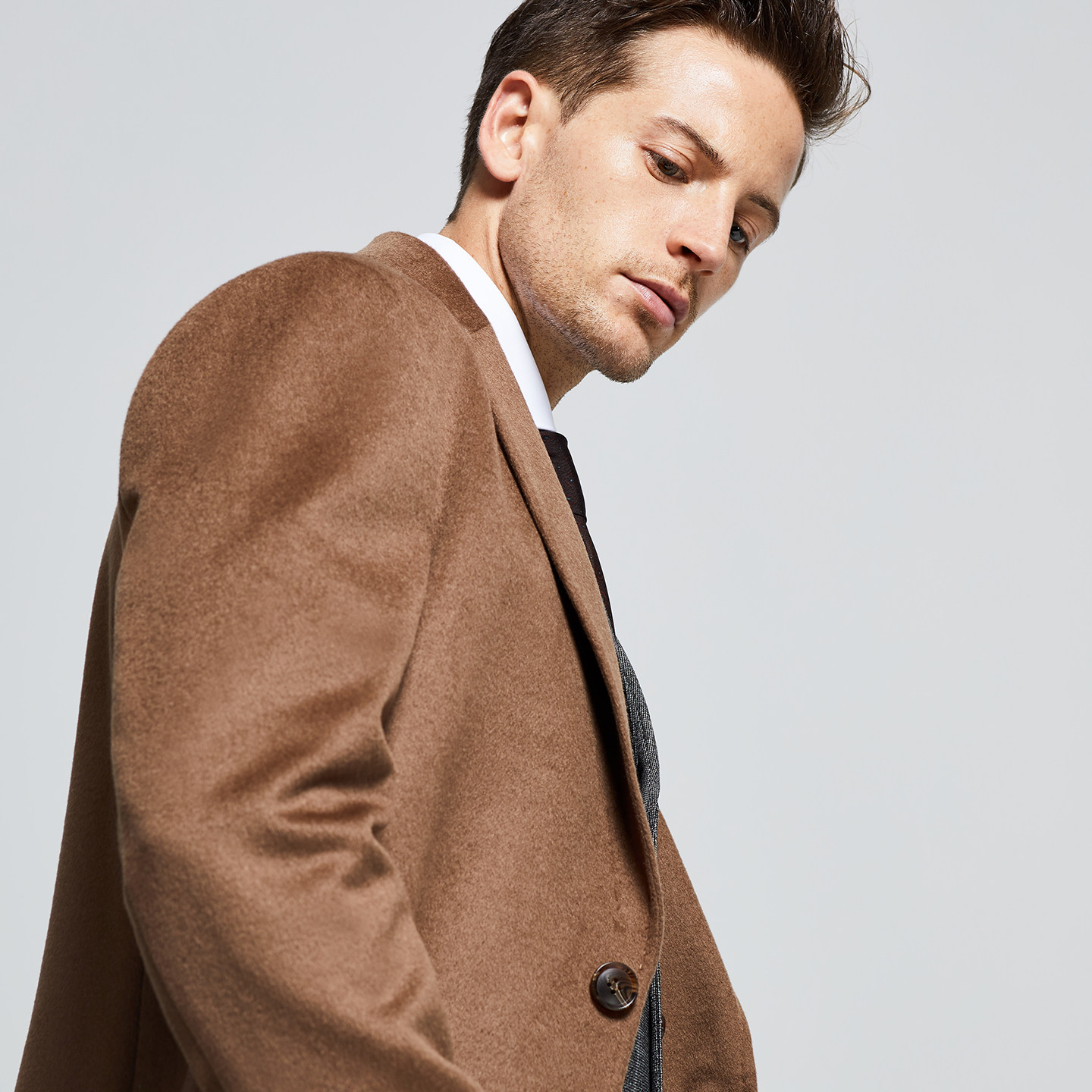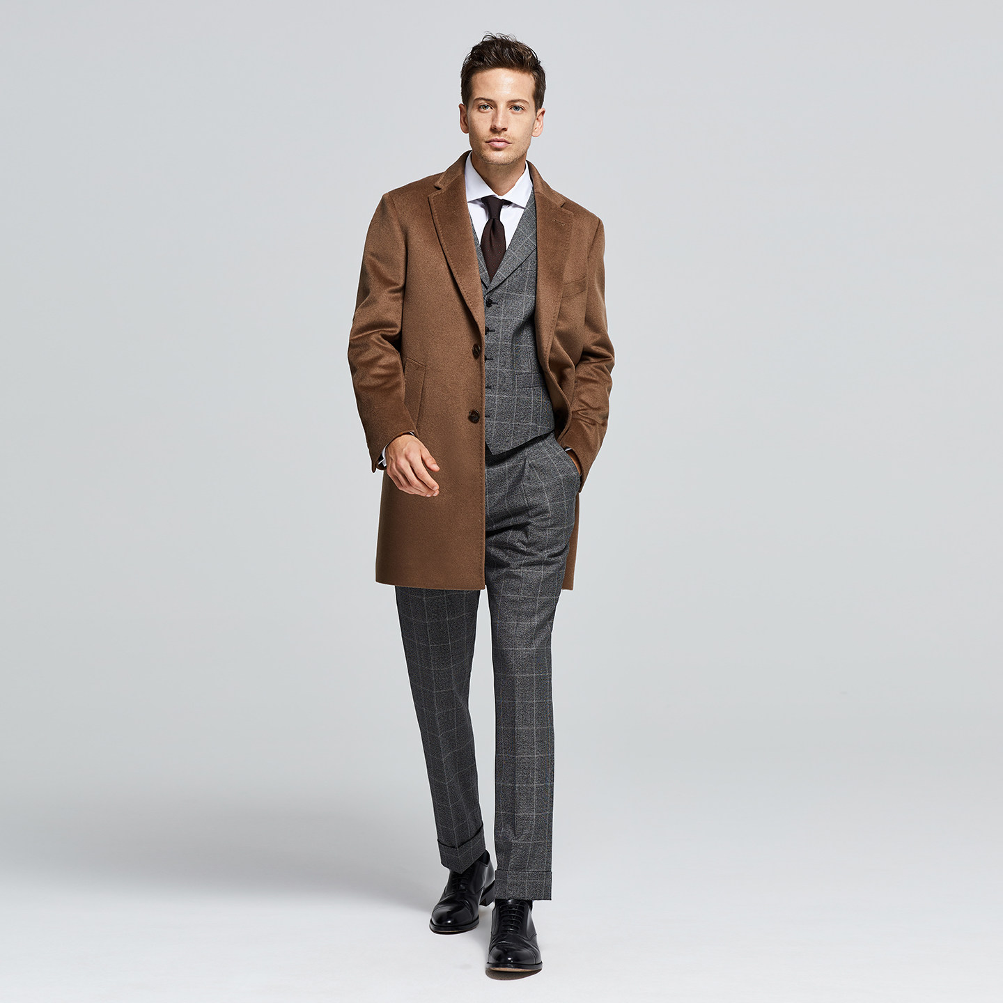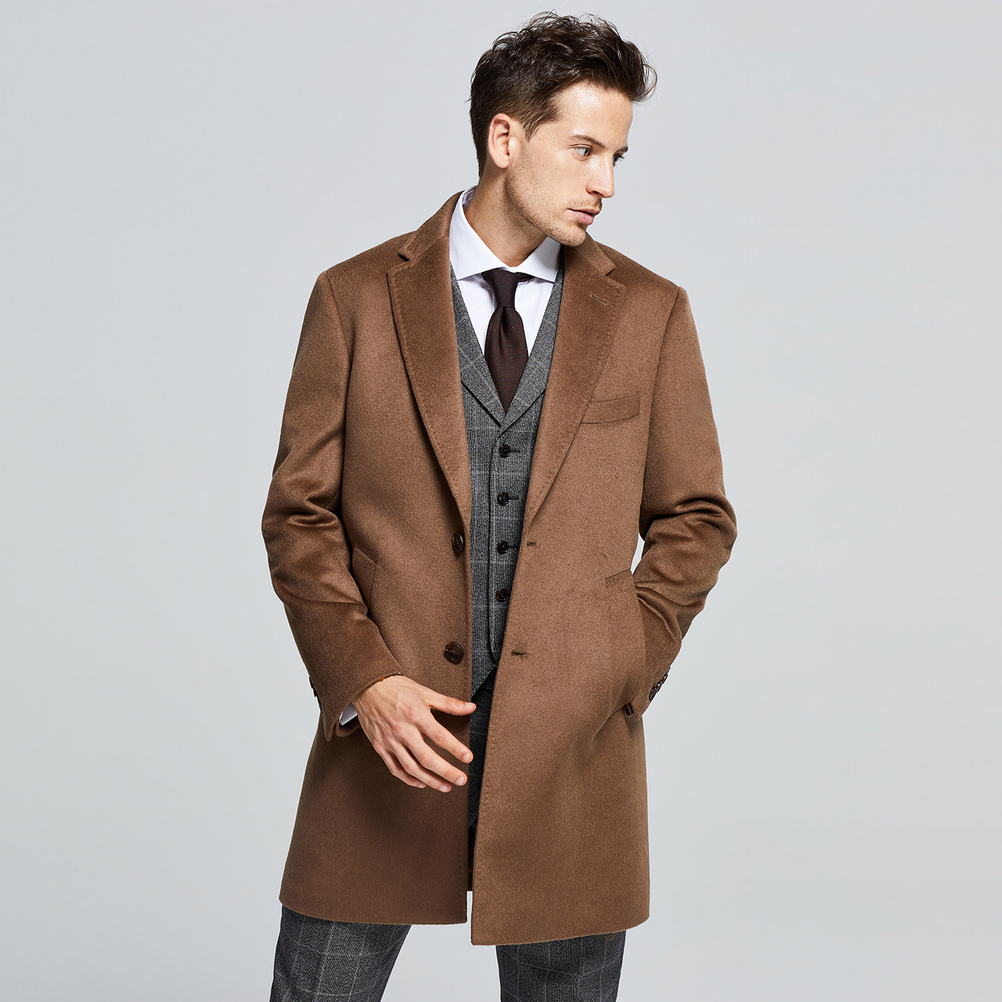 柏品纯澳洲羊毛切斯特菲尔德驼色大衣男士中长款翻领商务毛呢外套