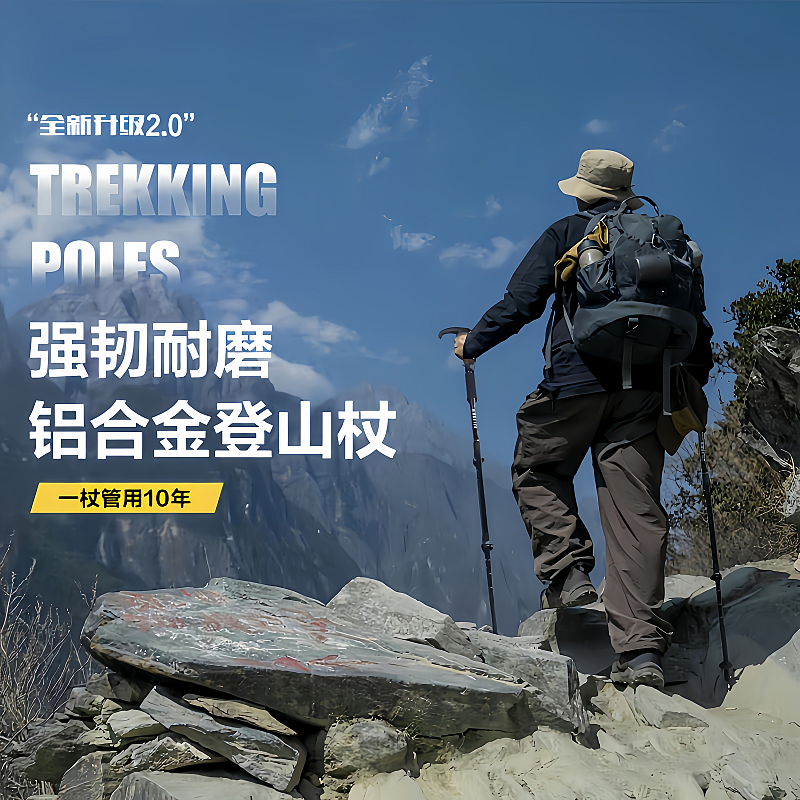 登山杖户外超轻伸缩杖男女爬山徒步装备防滑多功能老人拐杖