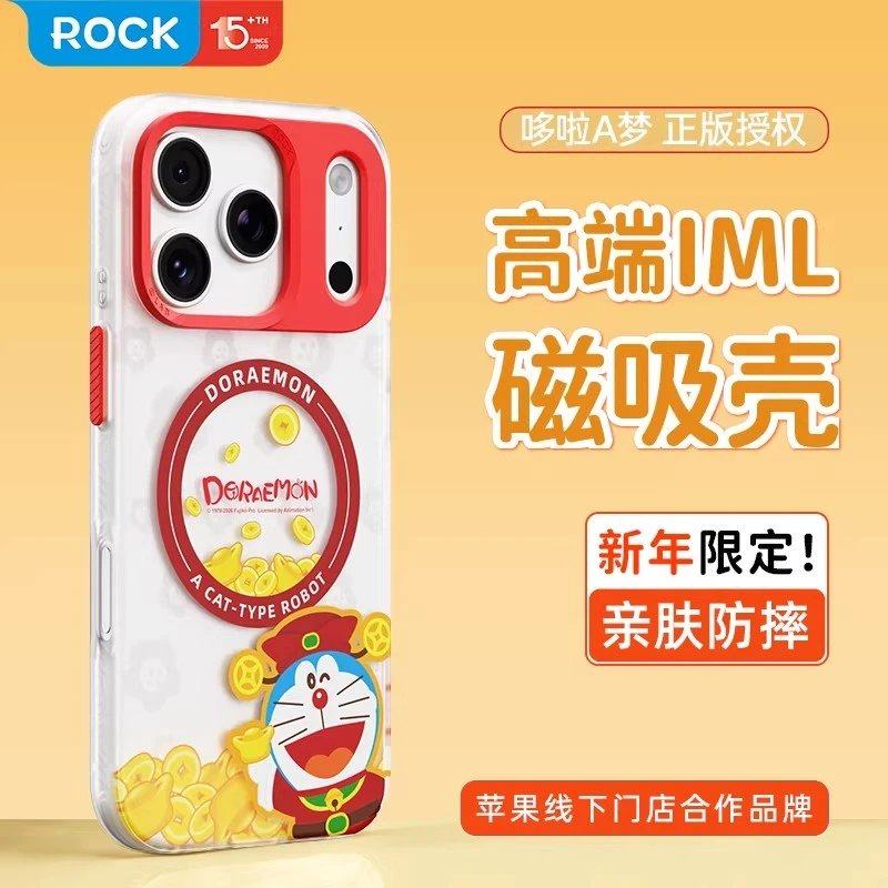 ROCK哆啦A梦正版新年定制版苹果iPhone17Promax磁吸手机壳马年大吉大利哆啦A梦手机保护套iPhone17苹果17新年