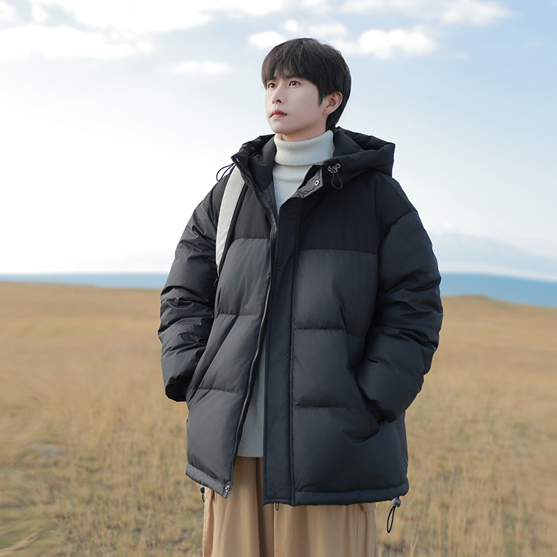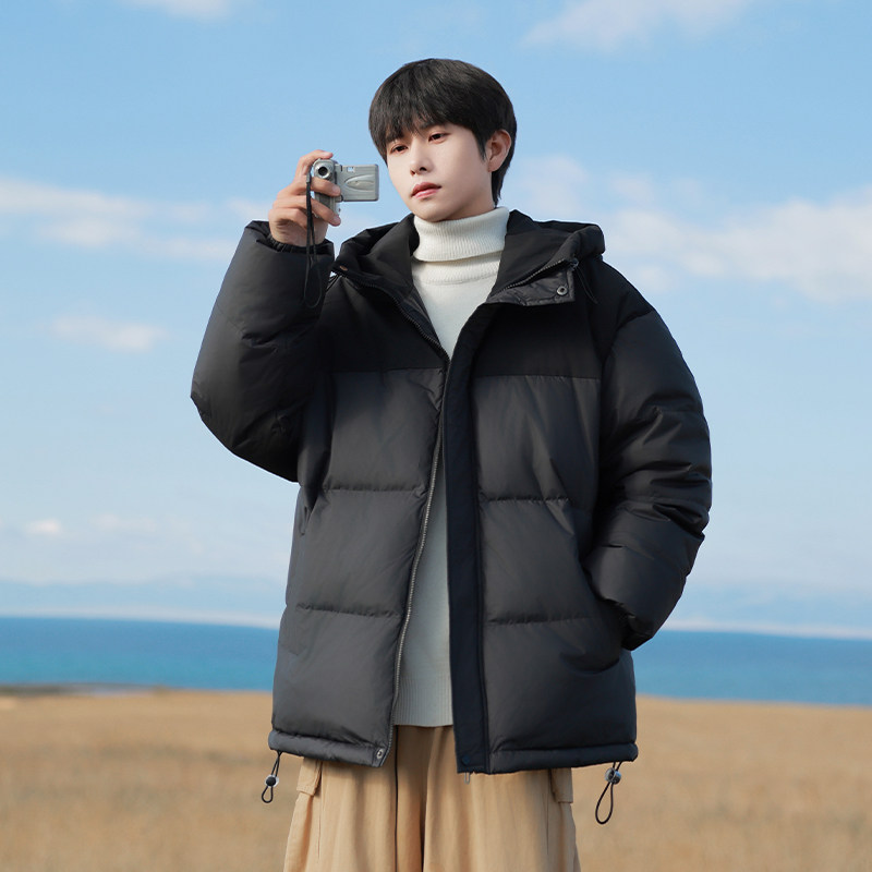 骆驼黑钻5 男装羽绒服防风拒水面包防寒服时尚连帽短款外套秋冬男