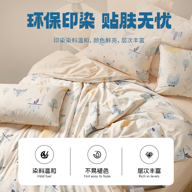 无印良品全棉四件套学生宿舍纯棉卡通儿童被套床单三件套床上用品