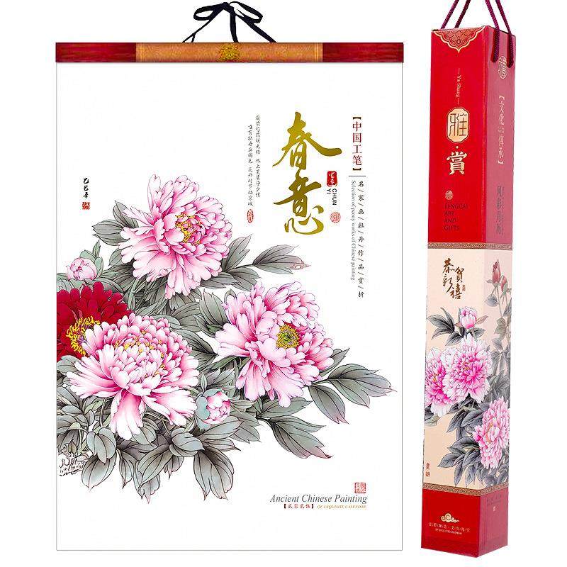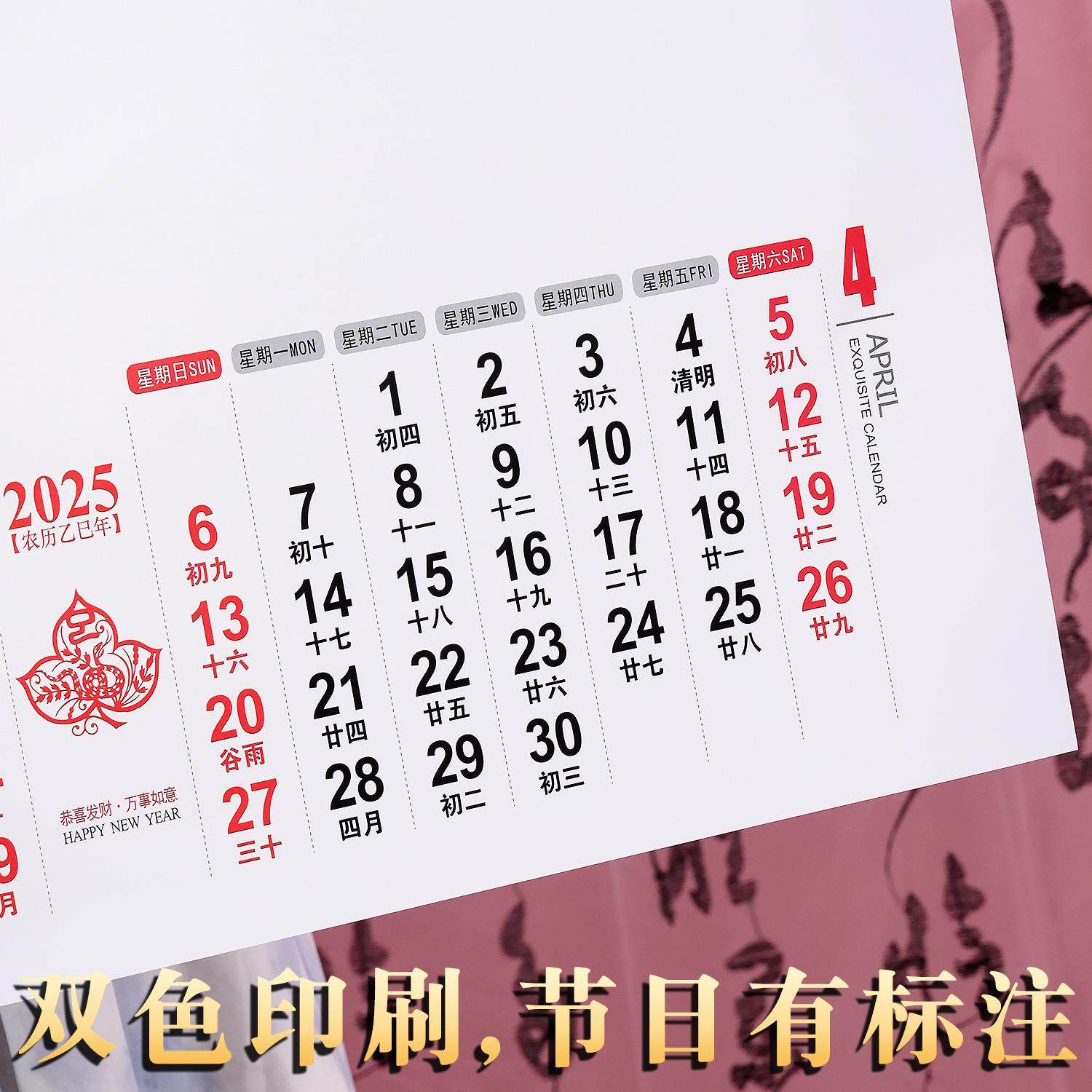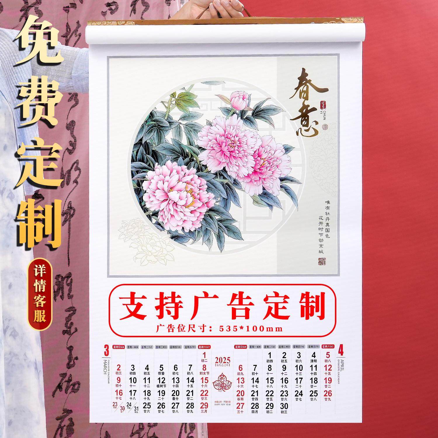 2026年挂历蛇年牡丹日历高档大尺寸挂历家用挂墙装饰画中国风月历定制