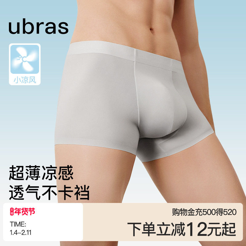 ubras冰丝男士内裤夏季薄款透气速干纯棉抗菌裆男生四角平角短裤