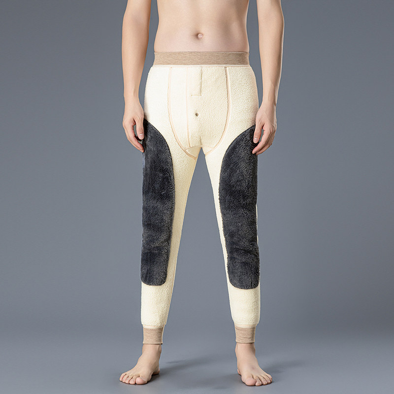 羊羔绒男士保暖裤加厚加绒打底棉毛裤秋裤加肥加大码德绒衬裤冬季
