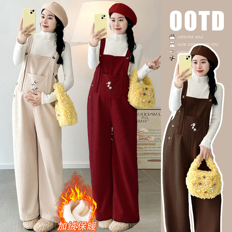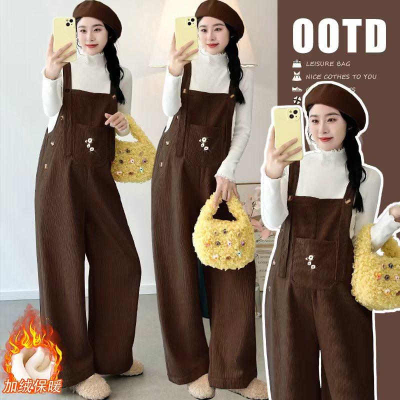 婧麒孕妇装背带裤套装秋冬2025新款半高领加厚两件套宽松两件套女