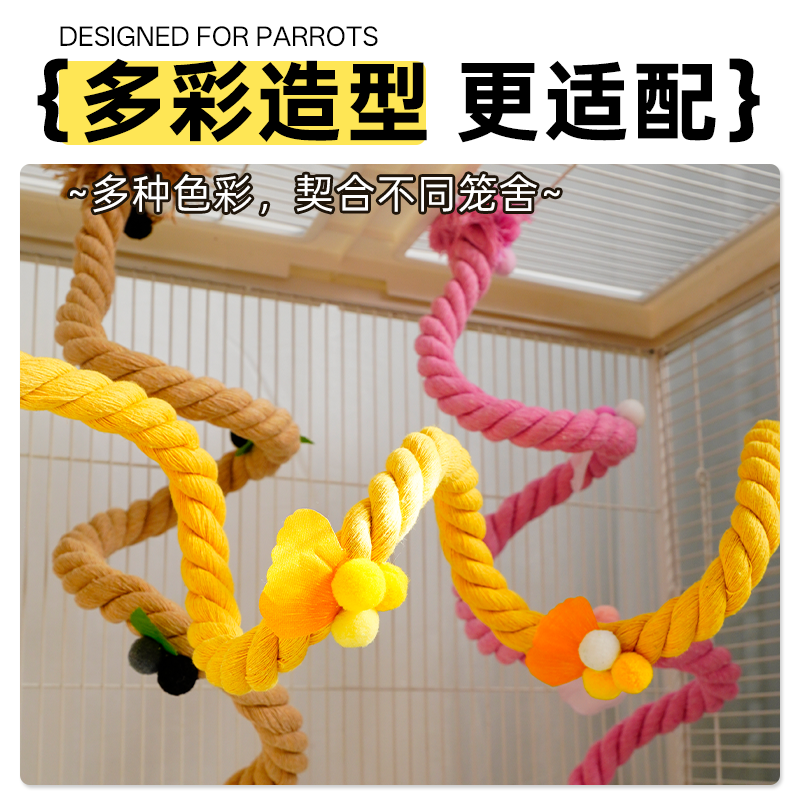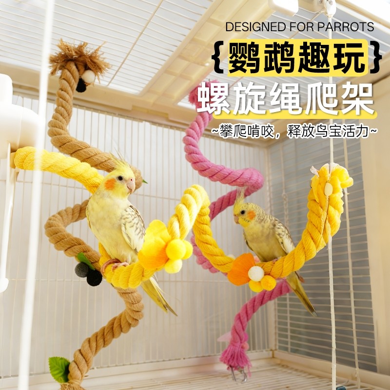 新款鹦鹉攀爬绳攀爬架加厚麻绳旋转站架可挂可固定虎皮牡丹鸟秋千
