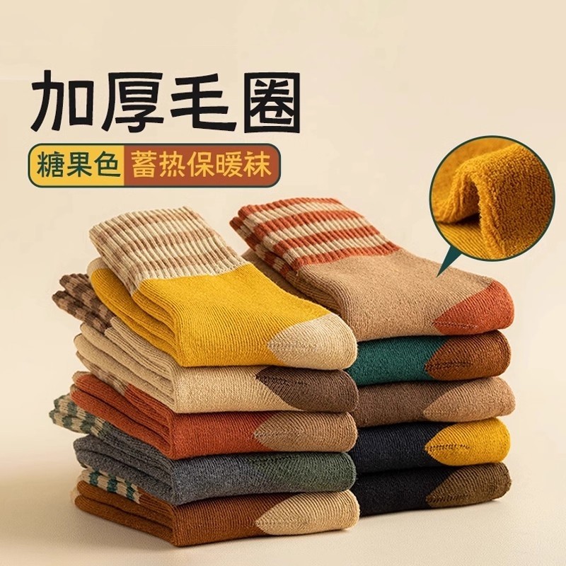 毛圈袜子女冬季加绒加厚毛巾袜冬天保暖长袜秋冬款男袜中筒袜长筒