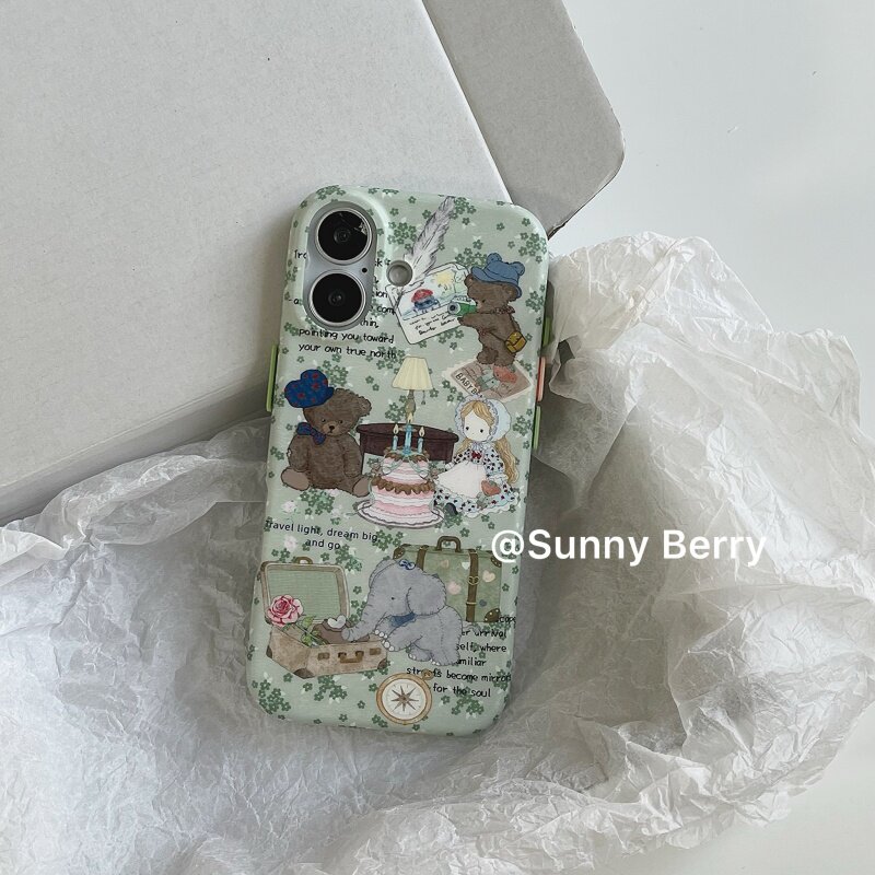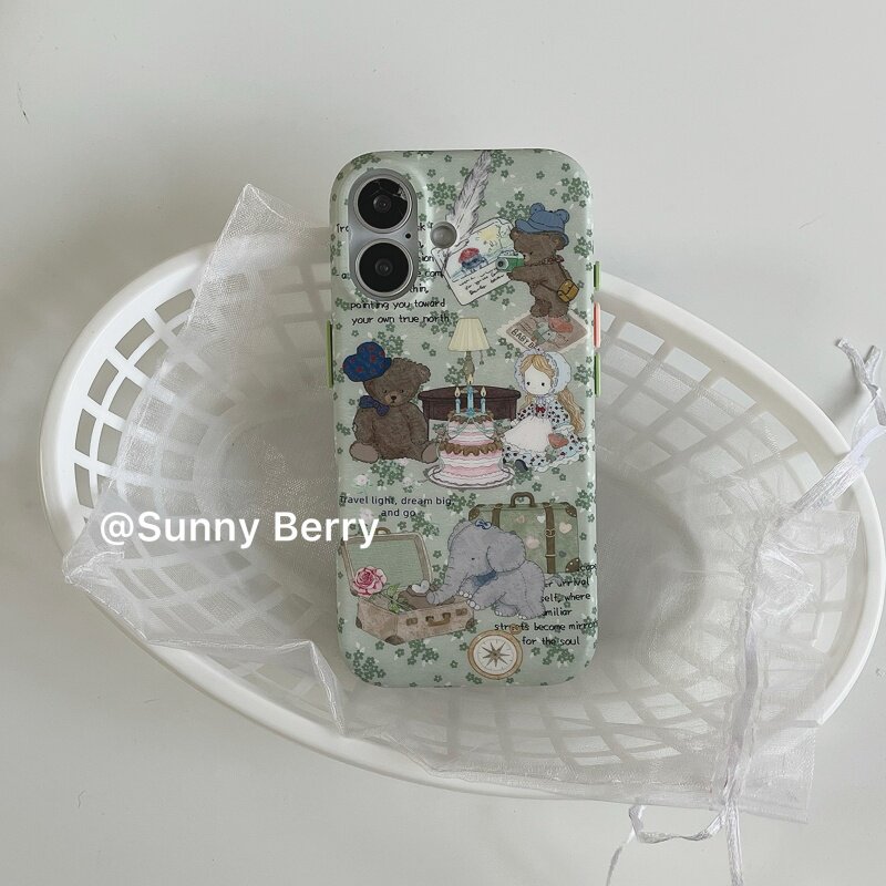 向日的浆果ins小众森系绿色碎花洋娃娃小熊之旅可爱插画适用苹果17pro手机壳iphone16promax/14/15保护套防摔