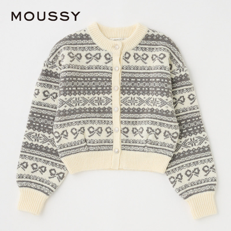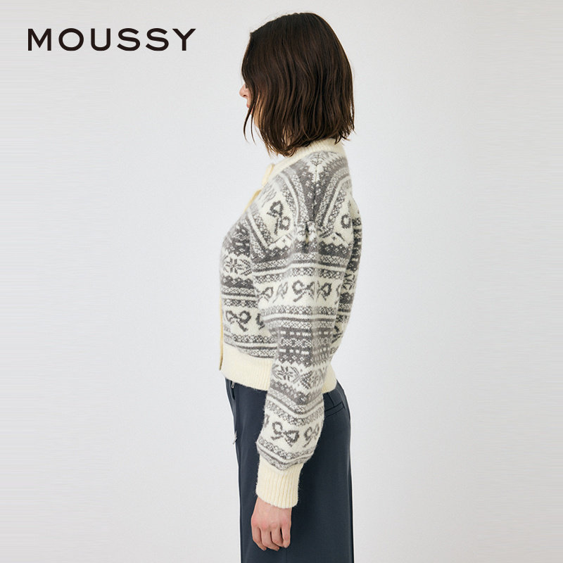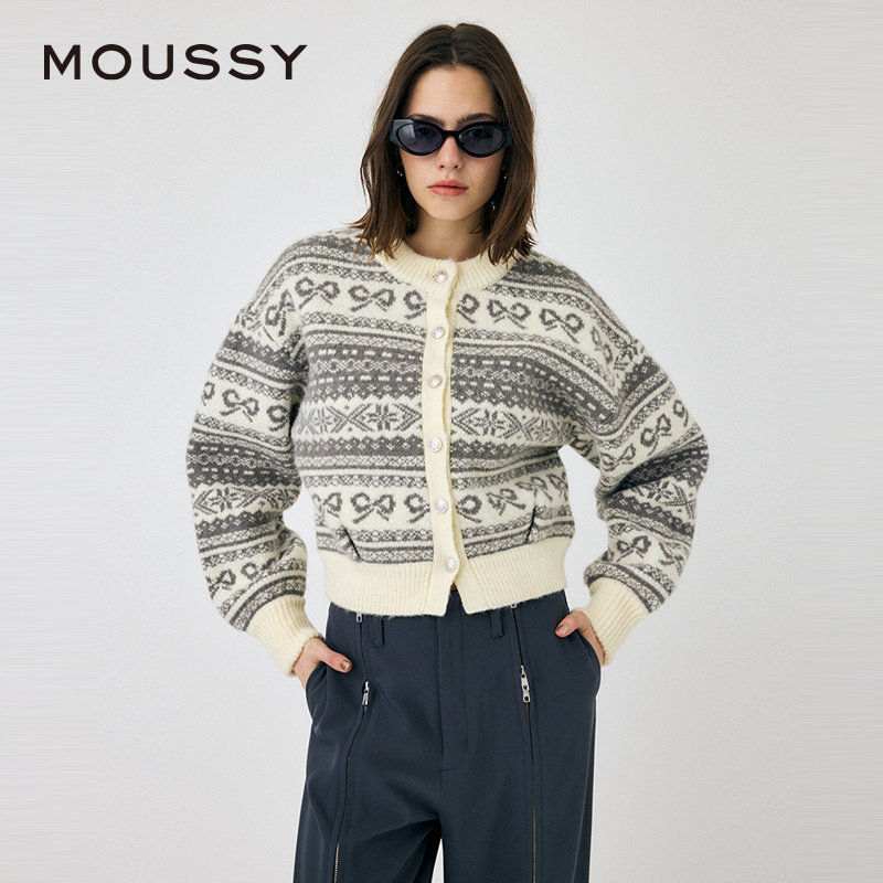 moussy 2024冬季新品费尔岛vintage港风针织开衫女010HAL70-5181