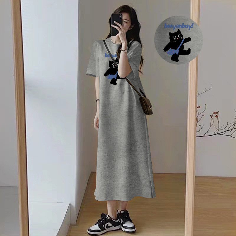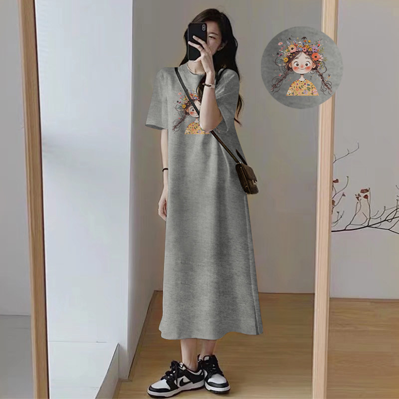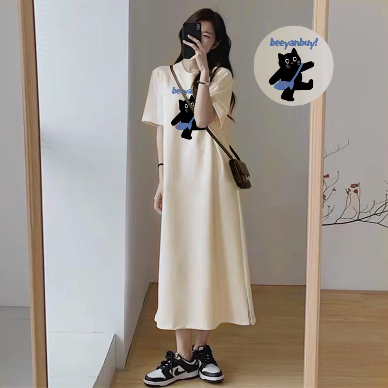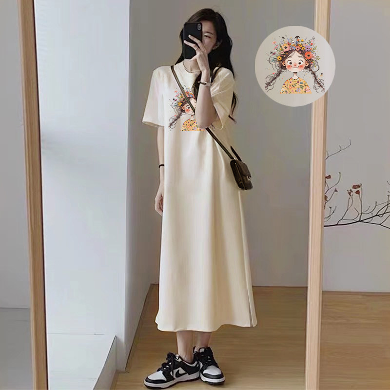2025孕妇夏季短袖连衣裙韩系休闲慵懒风t恤裙子宽松大码过膝长裙