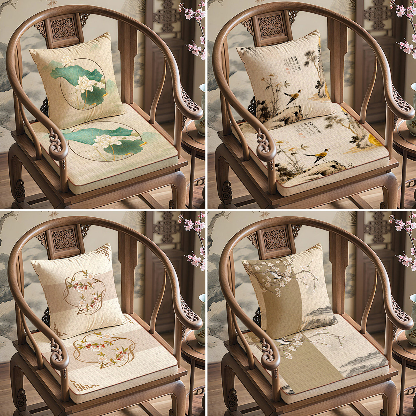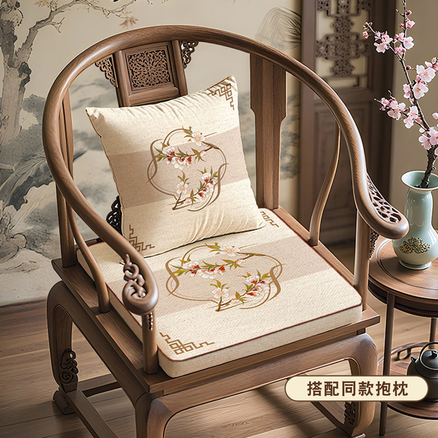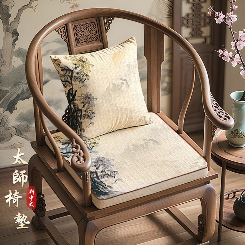 新中式椅垫红木沙发坐垫子家用茶椅圈椅餐椅加厚海绵座垫防滑美学