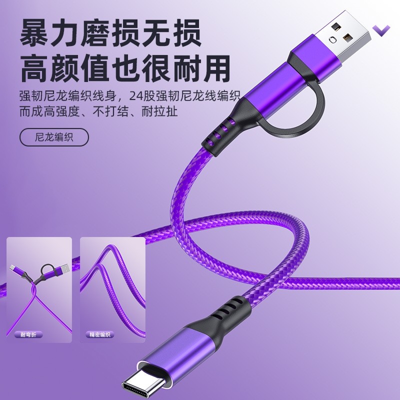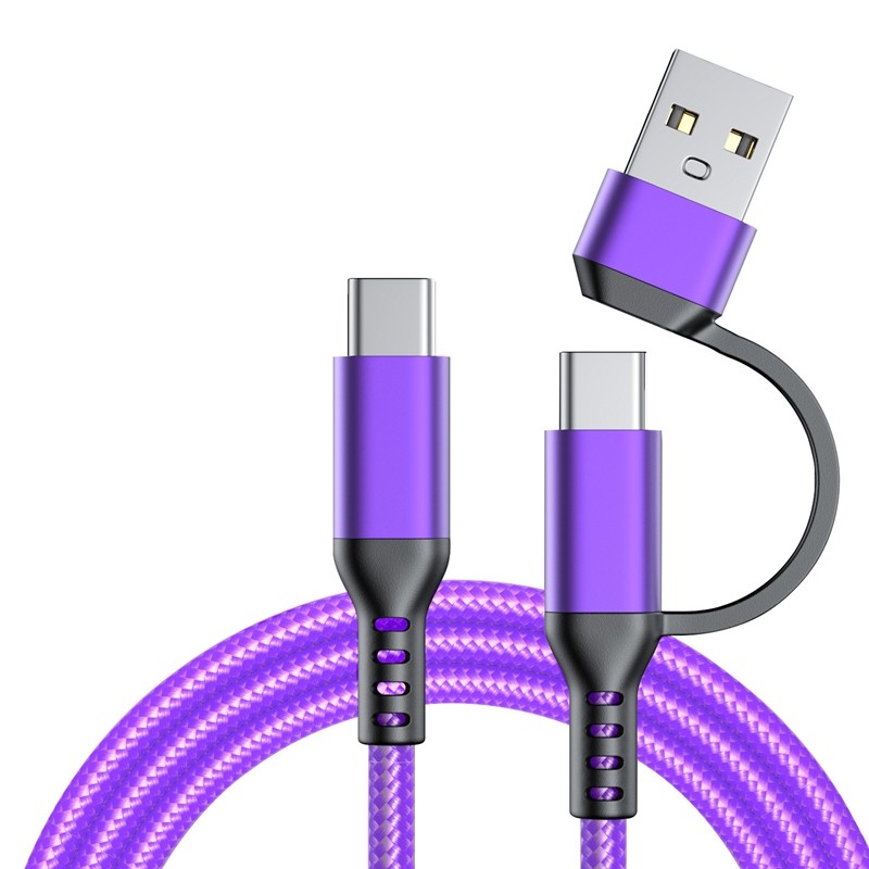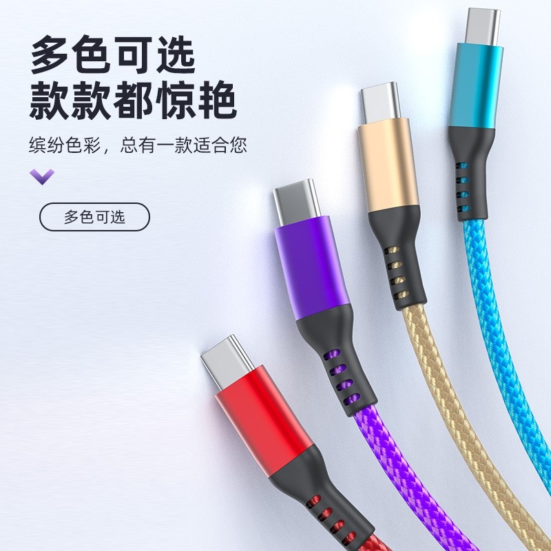 PD60W编织USB转双头Type C二合一拖二手机快充充电数据线适用苹果15华为荣耀三星安卓平板USB快充线长2米3米