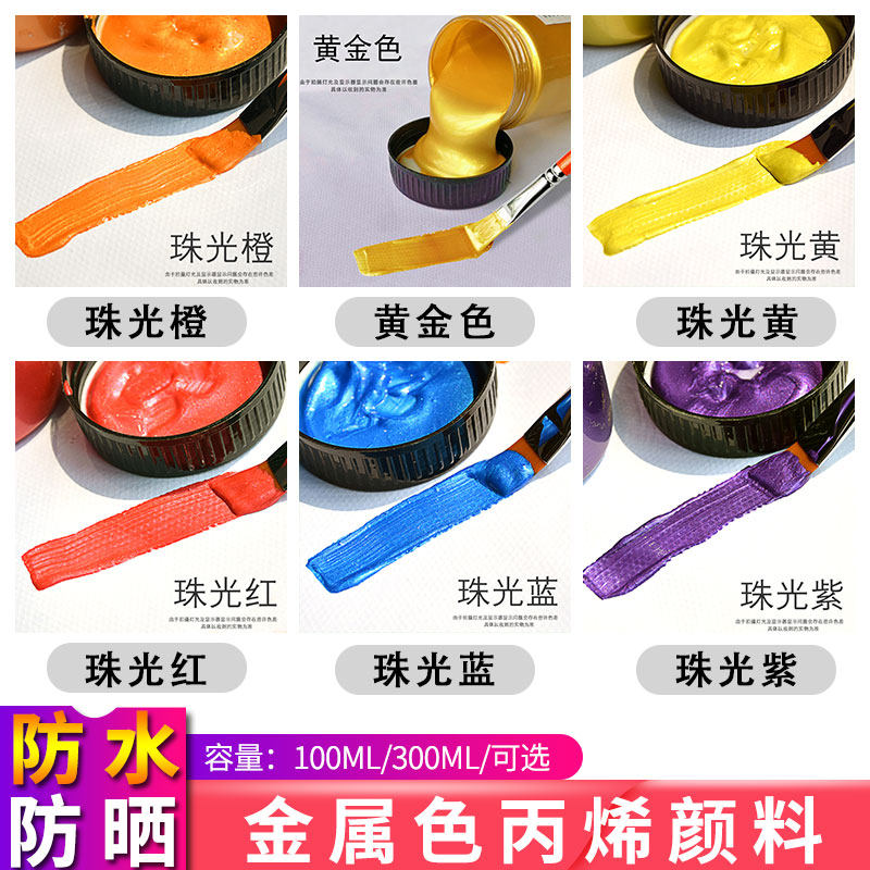 蒙特利莎 珠光丙烯颜料金色颜料金属色室内外墙绘金属上色石墩水泥鞋包布料染色防水防晒颜料儿童颜料