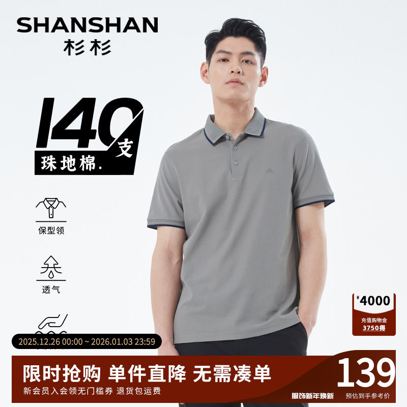 杉杉短袖t恤男2025新款夏季翻领冰丝商务休闲polo衫百搭舒适上衣
