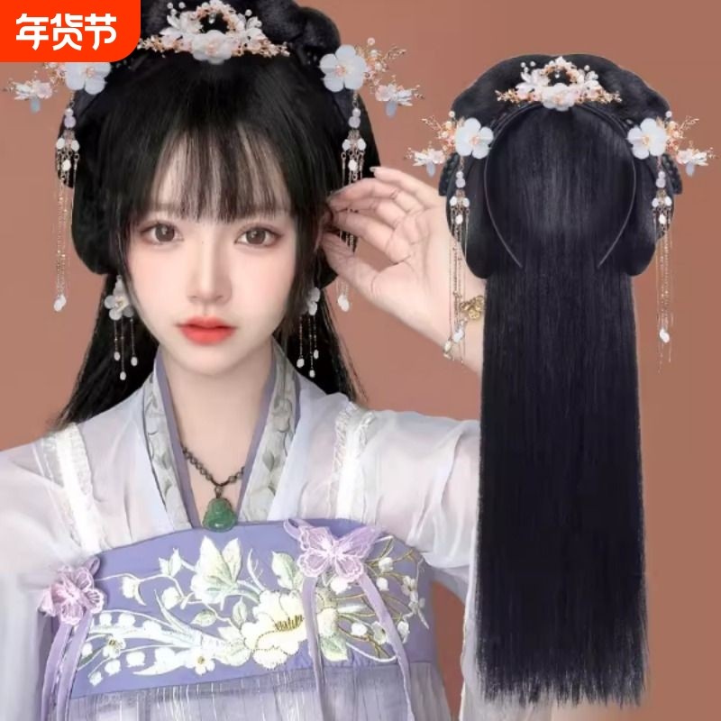 古风汉服假发髻盘发一体式发包古装明制唐风懒人造型垫发全套头饰