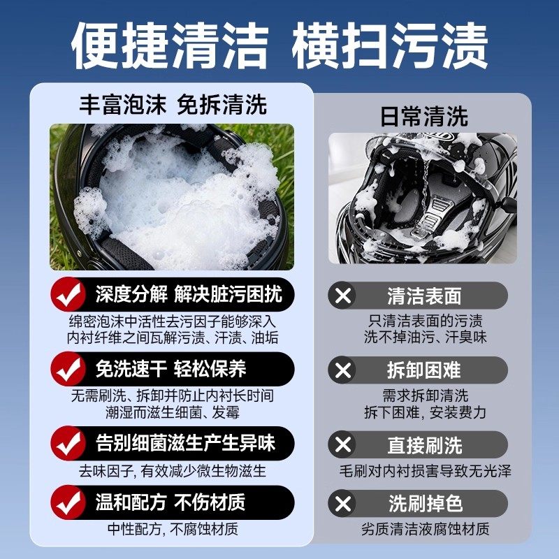 摩托车头盔清洗剂内衬内胆免拆免水洗泡沫除臭杀菌消毒干洗清洁剂