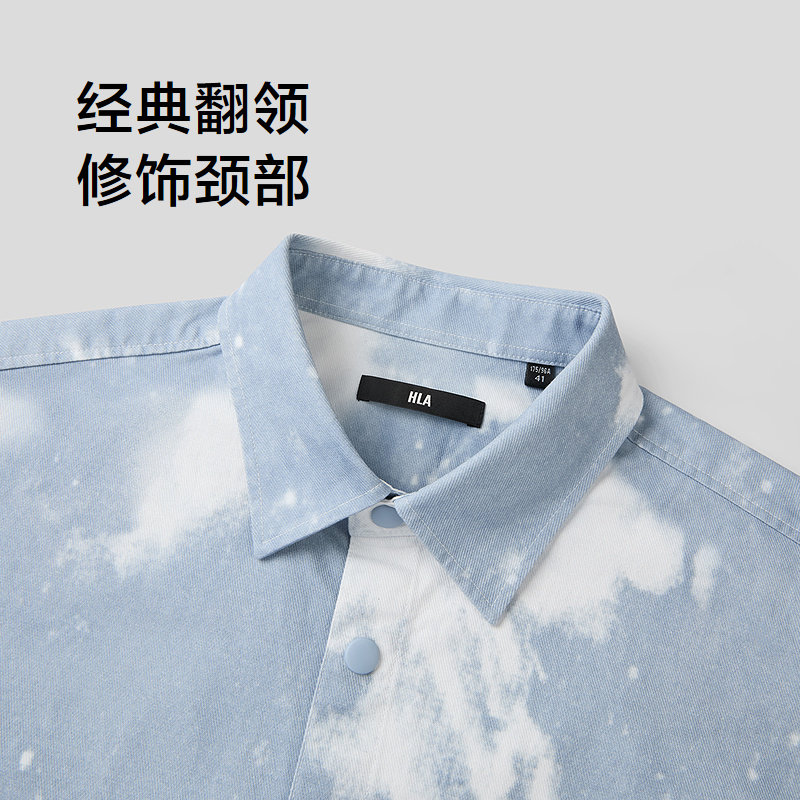 HLA/海澜之家纯棉质地长袖衬衫26春夏新翻领字母刺绣外套款衬衣男
