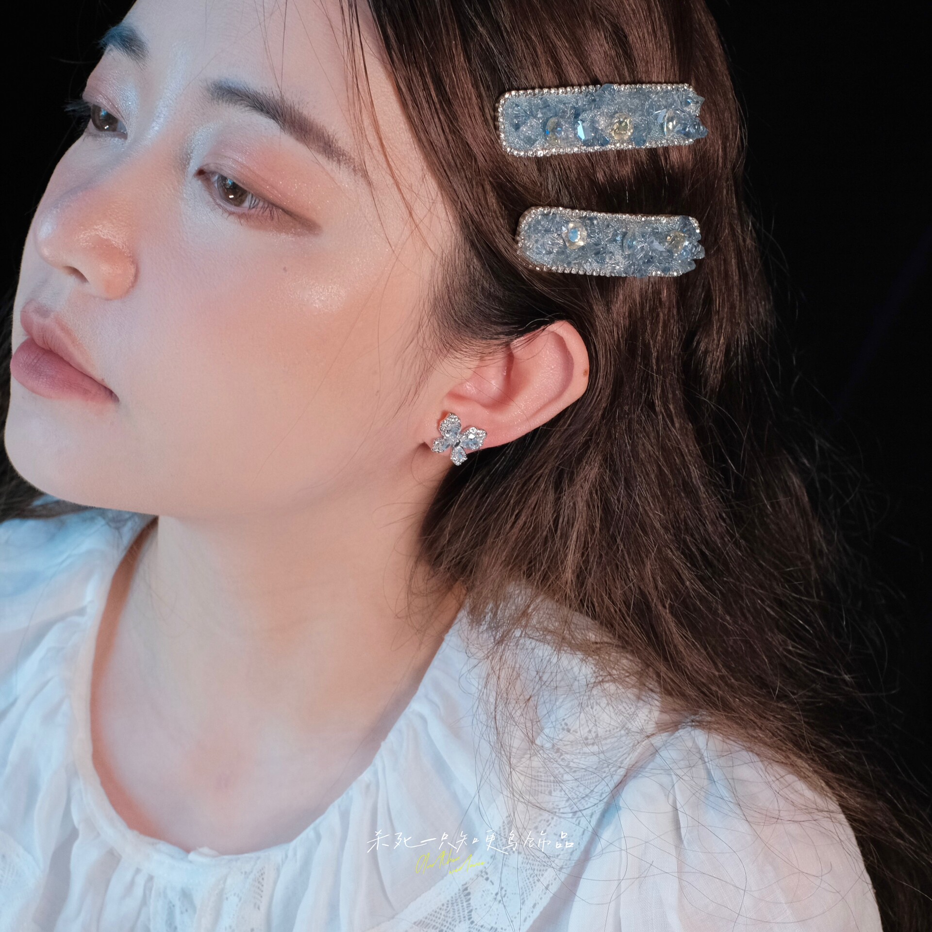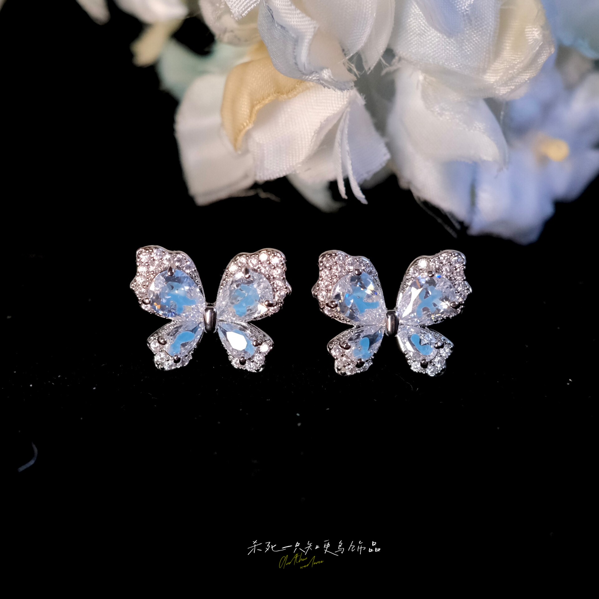 《云上精灵》轻奢精致蓝色锆石满钻蝴蝶适合夏天的耳钉耳环耳夹女