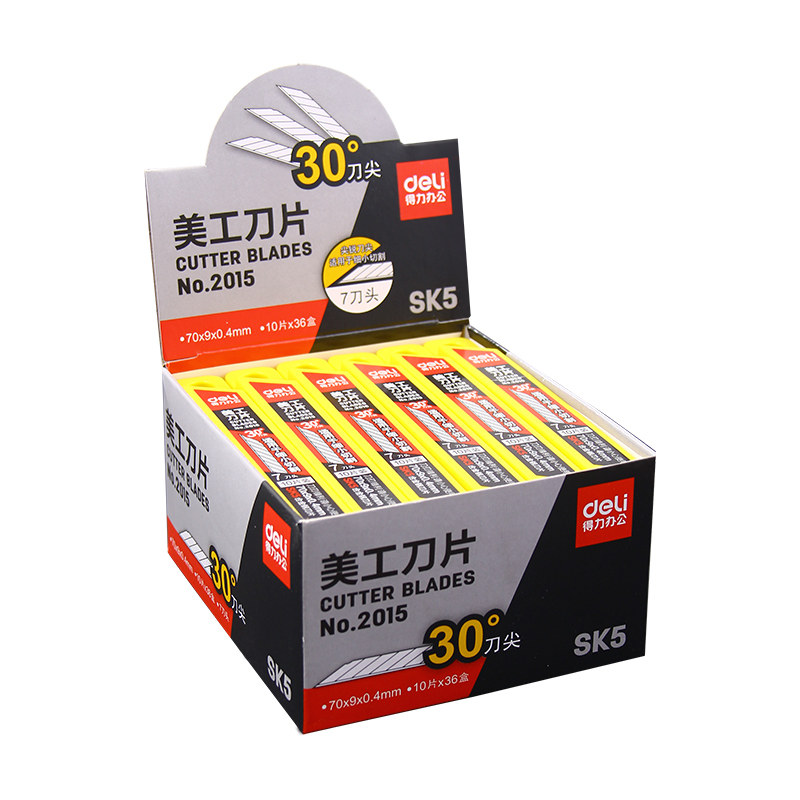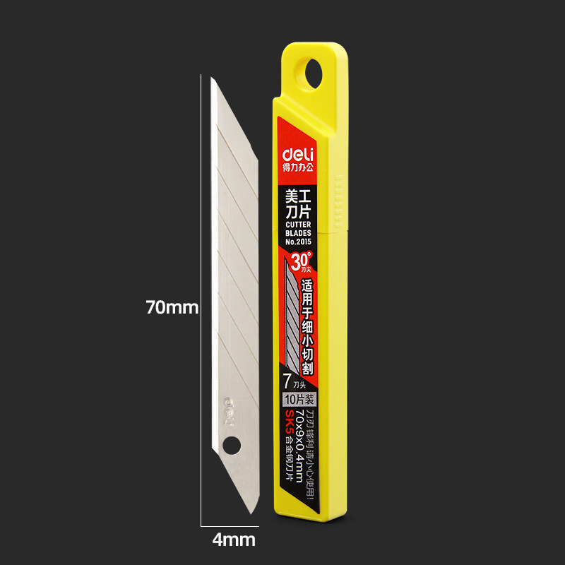 得力2015小号美工刀刀片30度小刀片介刀片9mm美工雕刻裁纸切割美术贴膜小刀工业用不锈钢手工多用途工具刀片