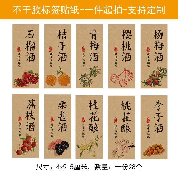 李子酒标签贴纸不干胶牛皮纸青梅酒标签杨梅果酒标签封口贴封签标