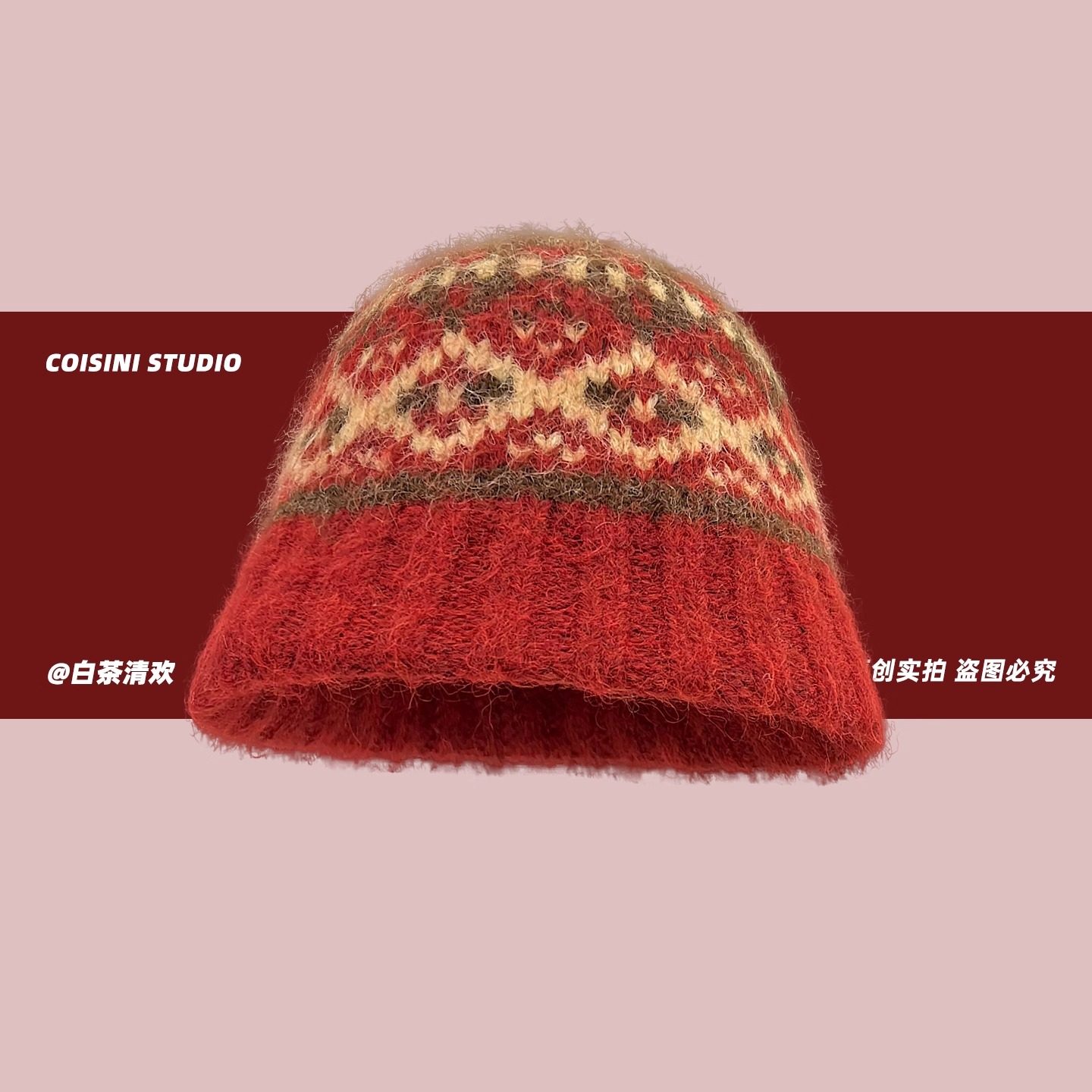 针织保暖帽费尔岛风护耳毛线帽女2025新款秋冬季帽子大头围显脸小
