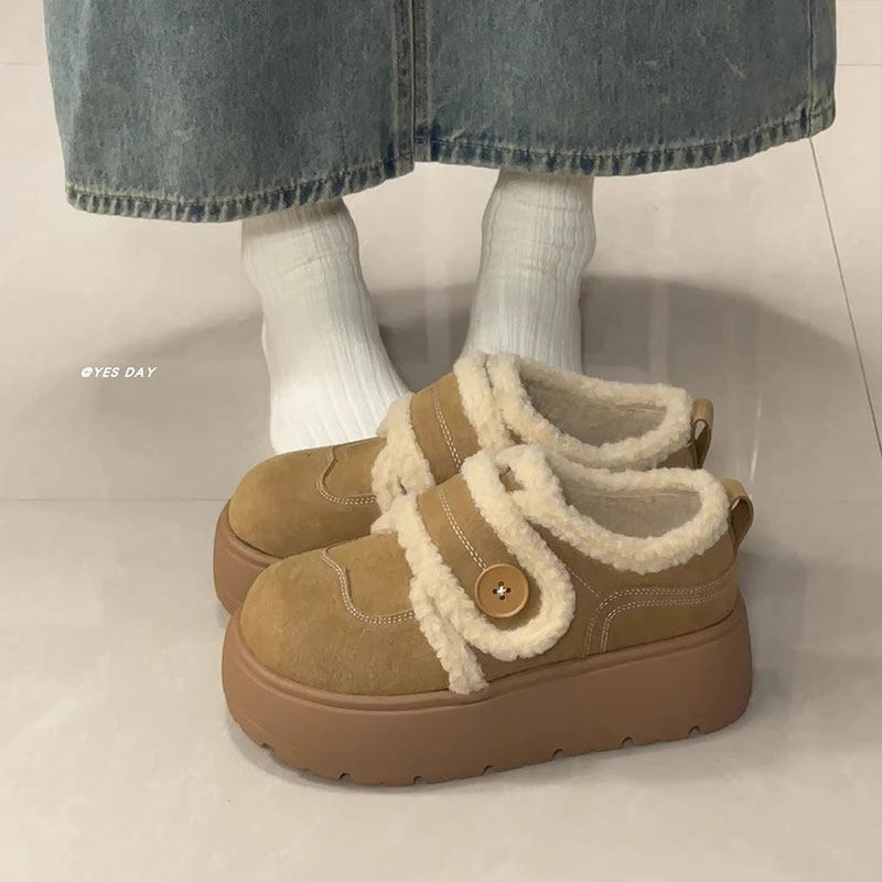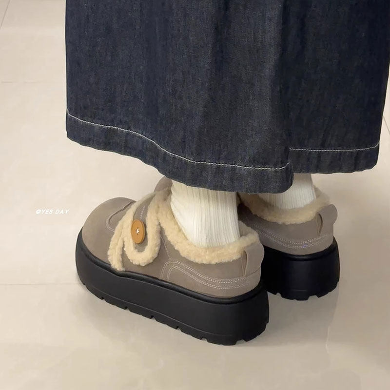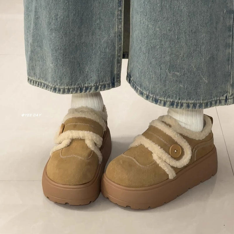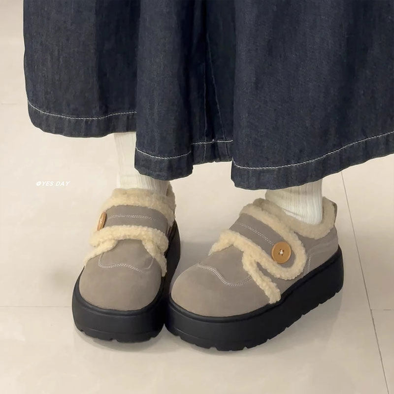 可爱休闲百搭加绒勃肯鞋女2025冬季新款厚底毛毛鞋雪地靴圆头灰色