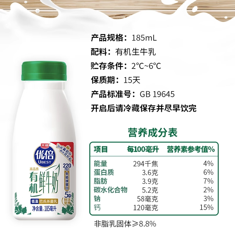 【详情领补贴】光明优倍有机鲜牛奶早餐奶185ml10瓶