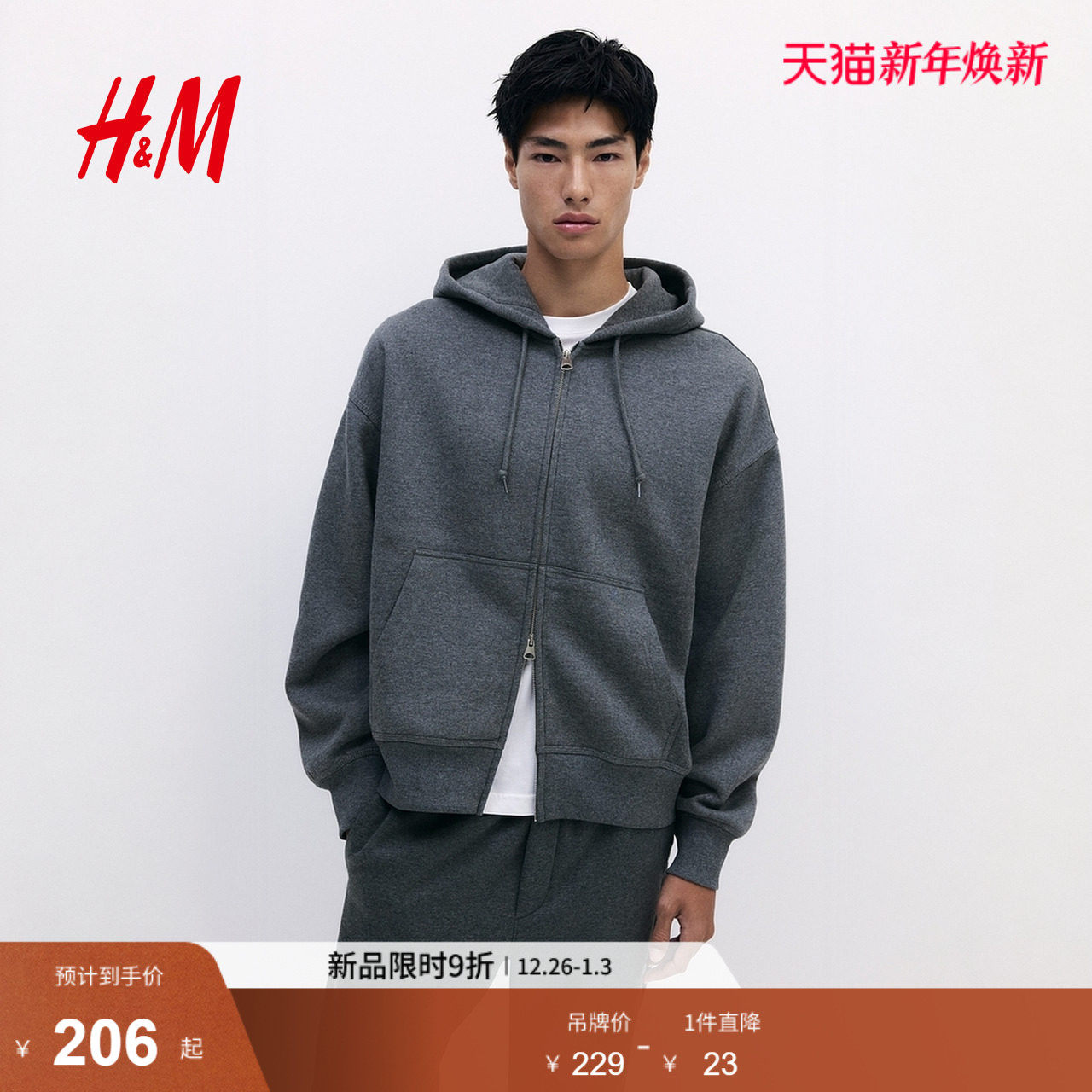HM男装女装卫衣2025新款连帽外套重磅美式拉链帽衫打底衫1240531