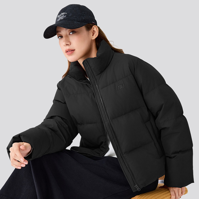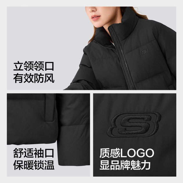 斯凯奇运动羽绒服冬季轻薄保暖柔软舒适梭织短款外套百搭