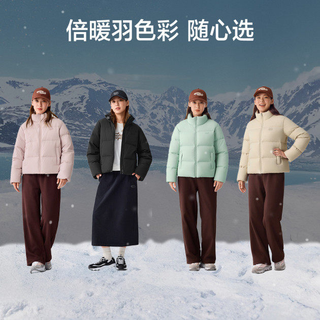 李宁火锅羽绒服丨男冬季鸭绒短款情侣上衣保暖加厚立领运动外套女