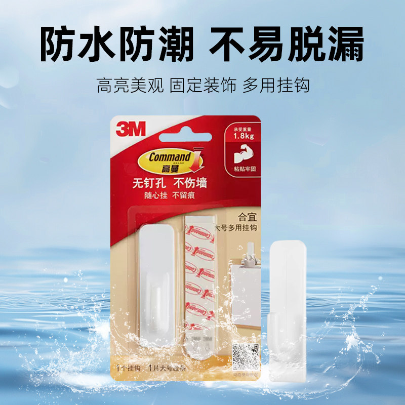 3m高曼多用无痕挂钩免打孔强力承重固定墙面防水透明家居装饰专用