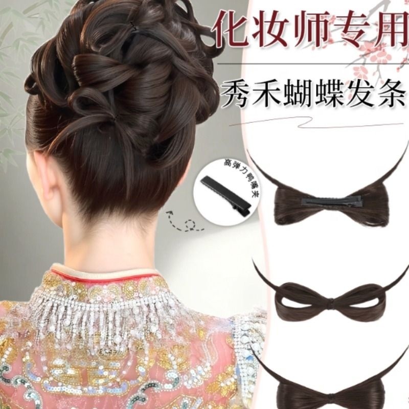 新中式假发秀禾蝴蝶结发条花发夹新娘化妆师专用预制蝴蝶结发包