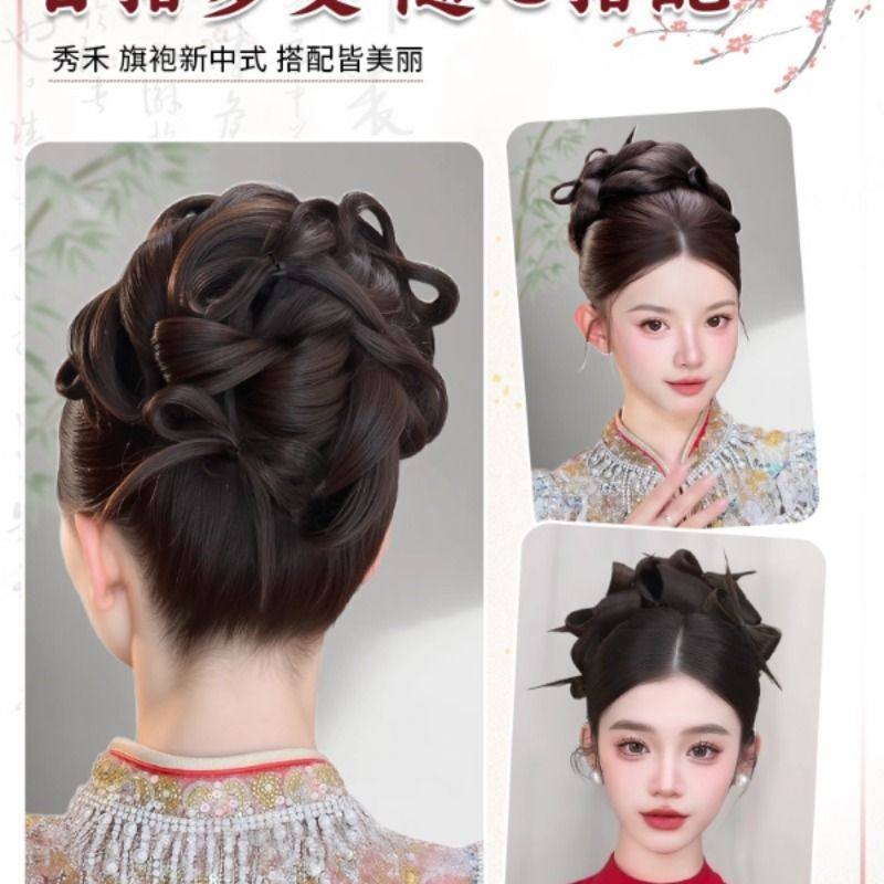 古风汉服假发髻盘发一体式发包古装明制唐风懒人造型垫发全套头饰