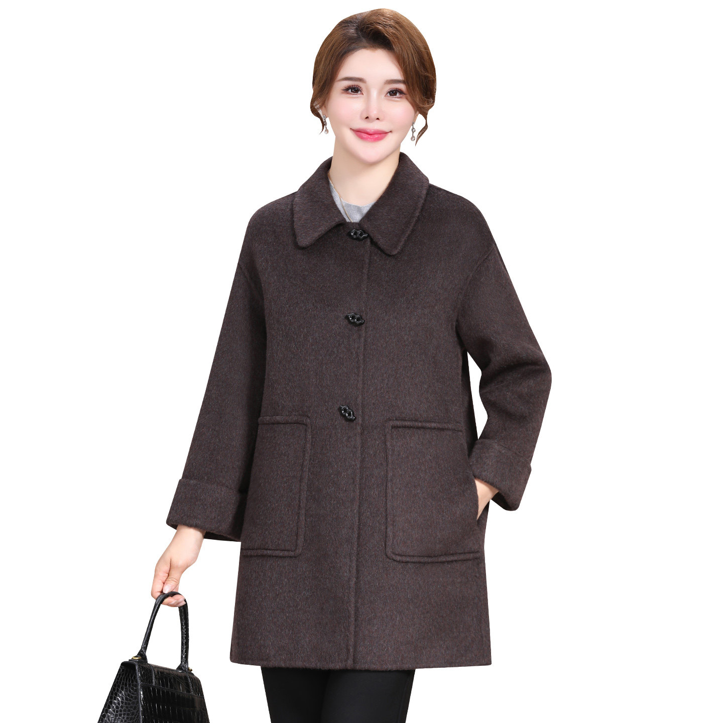 中老年人双面绒羊毛大衣女气质宽松2025新款高贵妈妈秋冬毛呢外套
