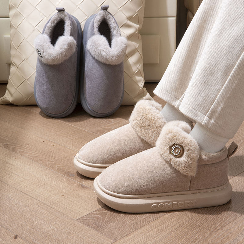 朴西棉拖鞋女士秋冬季厚底简约保暖室内居家用软底防滑情侣棉拖男