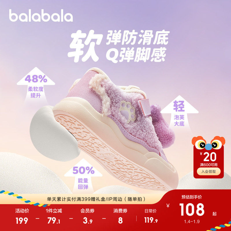 巴拉巴拉童鞋儿童板鞋可爱动物毛绒鞋子男童女童潮流秋冬新休闲鞋