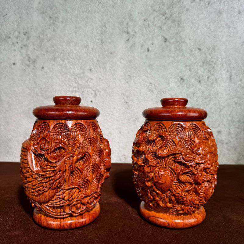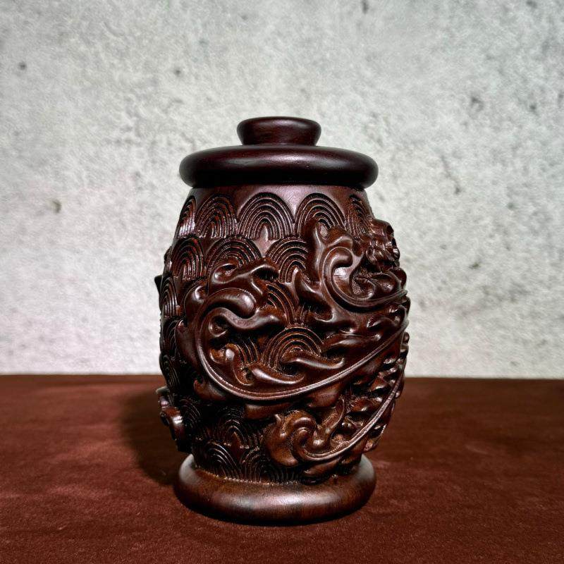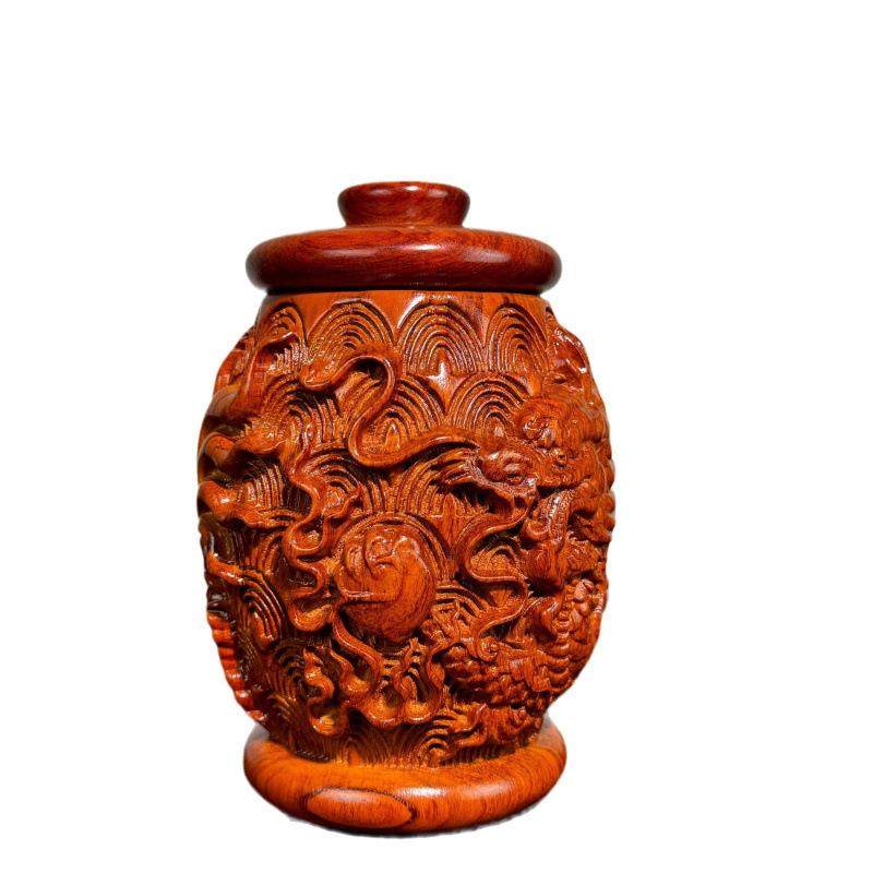 黑檀木雕刻 龙凤罐收纳罐浮雕龙凤 储物罐子家居摆设直播供货