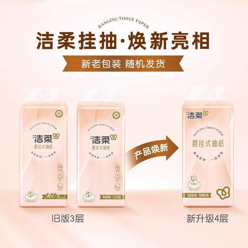 拉车套罩洁柔悬挂抽纸1280抽整箱家用壁挂纸抽卫生纸巾餐巾纸厕所纸壁挂式