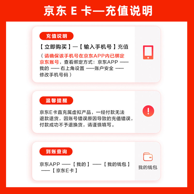 【官方直充】京东E卡5元面值电子卡5元京东卡购物礼品卡 填手机号